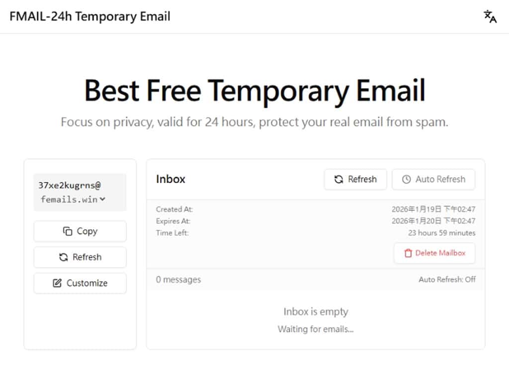 是一個提供臨時電子郵件地址的線上服務。簡單來說,它讓你在幾秒鐘內生成一個可以接收郵件的信箱地址,用完就丟,不留痕跡。這種服務在國外也被稱為 "Disposable Email"(拋棄式信箱)或 "Temporary Email"(臨時信箱)。它的核心理念很簡單:保護你的真實信箱不被濫用。